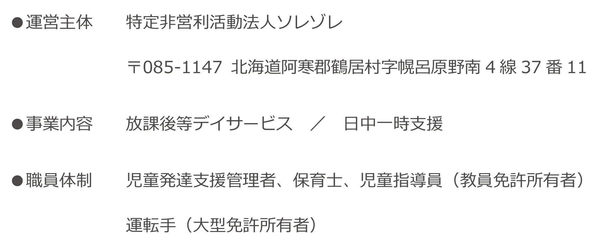 そして、ぜひ鶴居村・特定非営利活動法人ソレゾレの放課後等デイサービスに遊びに来てください。