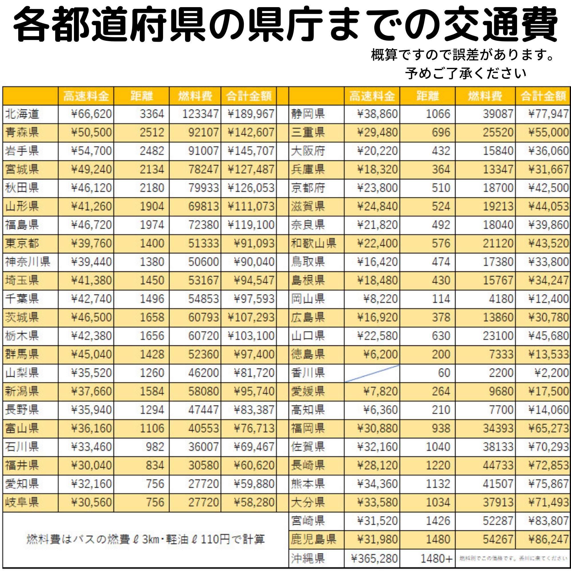 下部に掲載の各県庁までの交通費をご参考ください。
