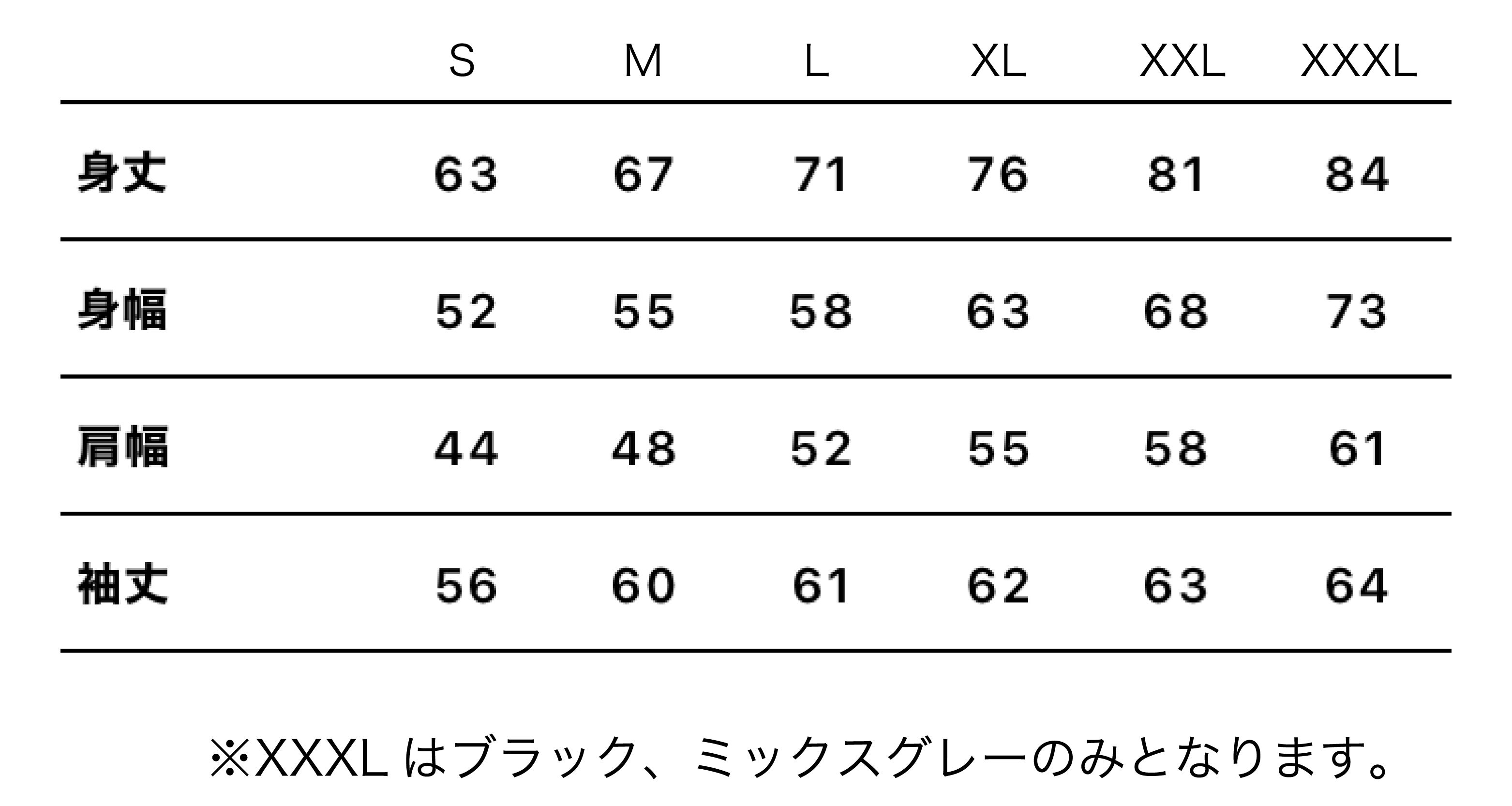 ※XXLはブラック、ミックスグレーのみとなります。