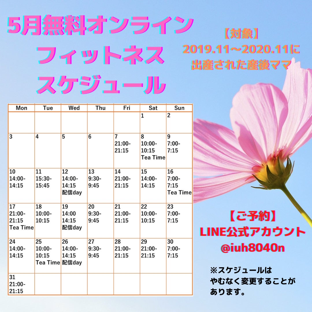 まずは、5月のスケジュールがこちら↓