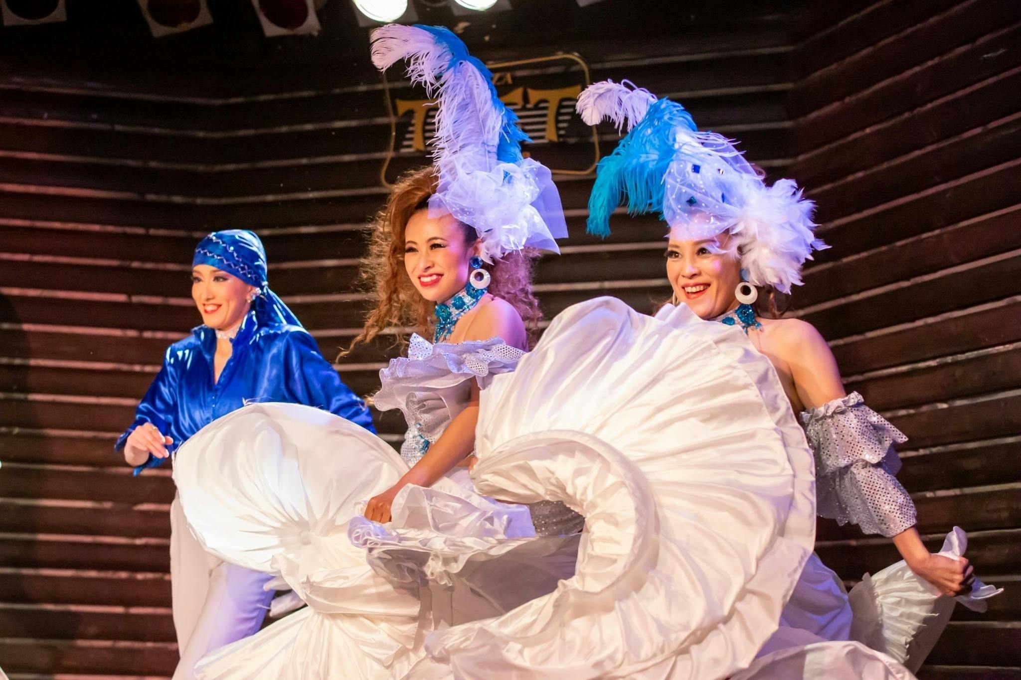 Cabaret Rose(キャバレーローズ)とは、銀座最古のキャバレー『白いばら』で毎日ショーをしていた元白ばらダンサーズで構成されています。歌とダンス、豪華な衣装が見所のレビューショーを定期的に行っております!