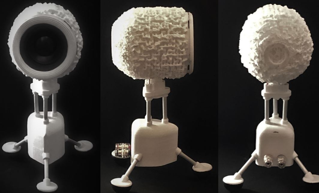 新しいアプローチで設計された筐体は、箱鳴りを抑制するための重厚なエンクロージャーが不要なため、本体の小型化を可能にしました。また3Dプリンターにより実現できた複雑なその構造は、機能性と共に今までのスピーカーとは全く異なる斬新なデザインで新世代をイメージさせます。