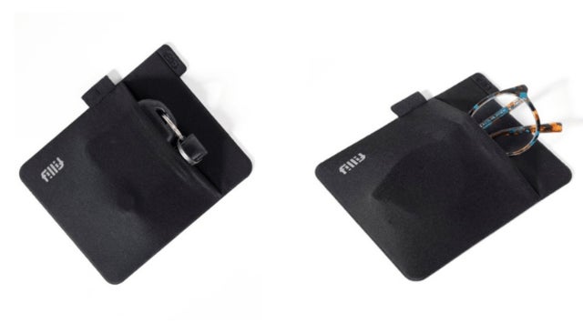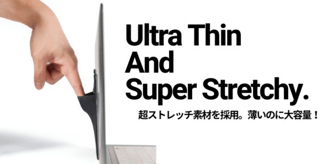 FillitPocket 2.0は、厚さ2.5mmの超薄型です。ポケット部分は超伸縮性の素材を使用しており、大きさや形状の違うアイテムをまとめて収納できます。