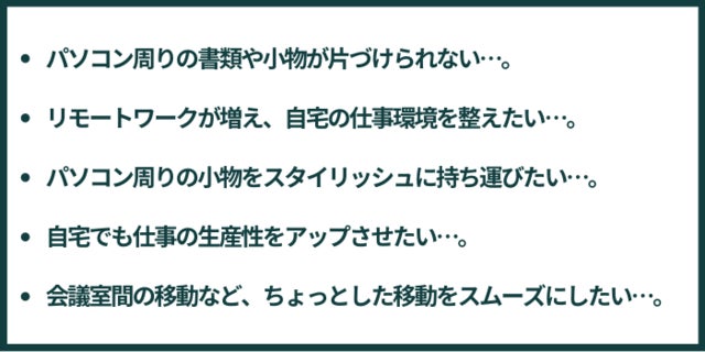 仕事環境をスッキリさせて生産性を上げたいのに、仕事をするため必要なものを揃えると持ち物は増える一方…。