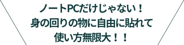 コンピュータ、タブレット、電子機器、金属、プラスチック、ガラス、家具など、平らで凹凸や継ぎ目のない場所に簡単に貼り付けられます。