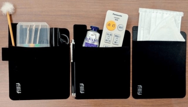 跡を残さず繰り返し貼り付けるために、特殊な粘着技術を採用したり、小物を収納するのに最適なサイズの研究、スムーズな出し入れに適した素材の選定など、改良を重ね、このFillit Pocket (フィリットポケット)を完成させました。