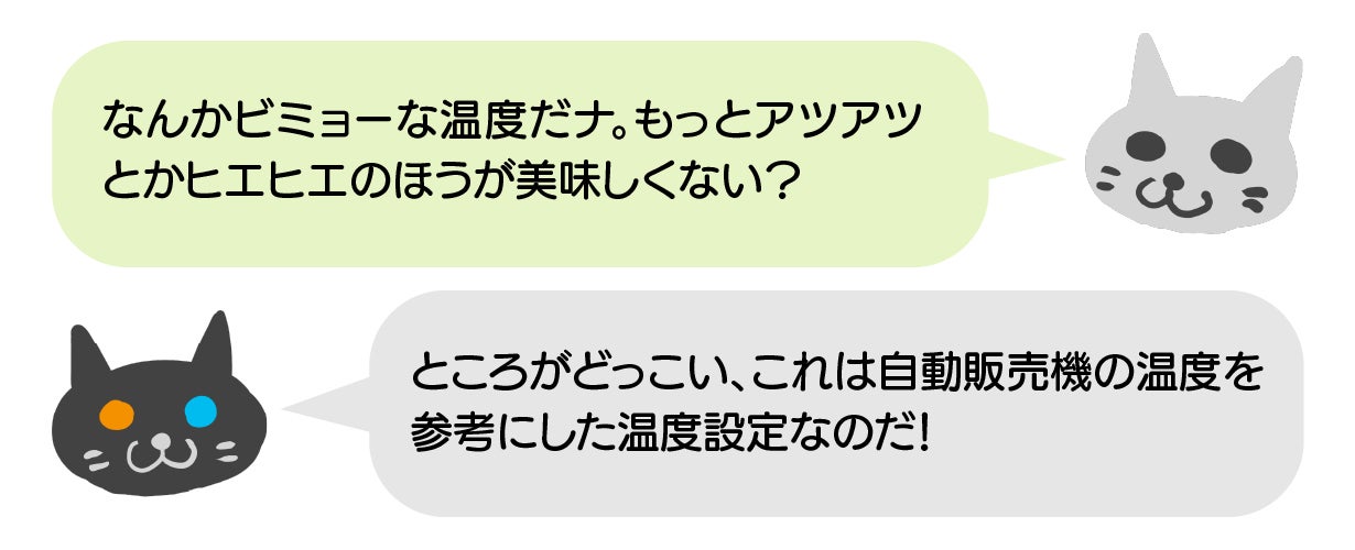 HOTが45℃、COLDが8℃、この温度は自動販売機を参考に設定されました。