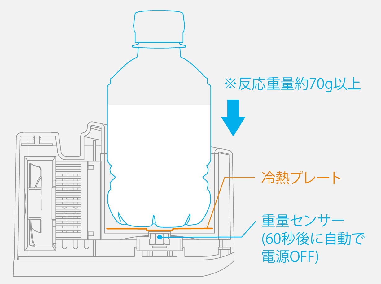 ※目安として、容器を含めた総重量約70g以下(350mlのアルミ缶ですと内容量約60ml以下)になると反応しなくなり、電源がOFFになります。