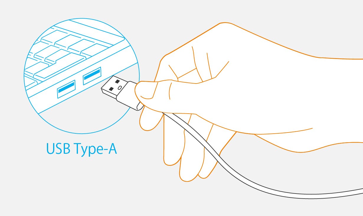 A. パソコンのUSBポートはType-Aの3.0なら使用可能です。2.0はご使用になれません。Type-Cは、変換コネクタ等をご使用いただければ、接続して使用することができます。