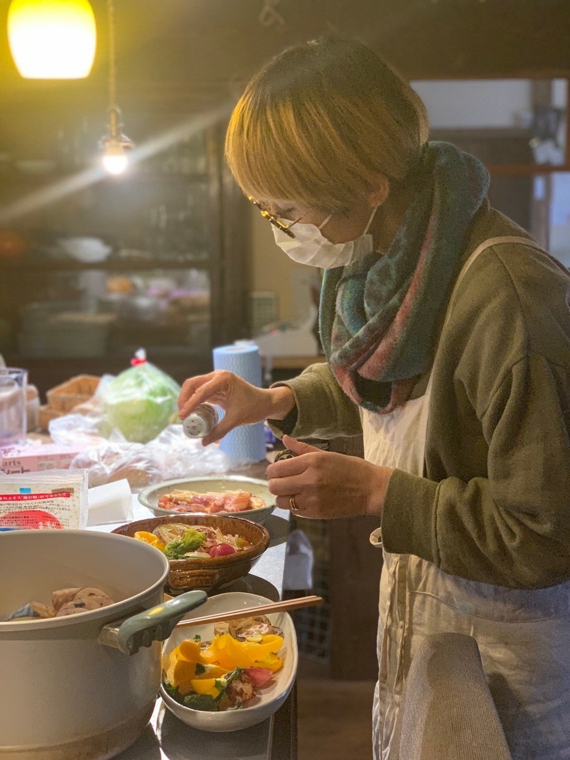 何年も前にこの土地に来てすぐの頃です。熱が出てしまい自宅で寝込んでいました。そんな時にご近所の方が両手で椀を持ち、温かい野菜のスープを持ってきてくれたのです。そのスープを飲んだ時に涙が出ました。味も美味しかったのですがなにより愛を感じたからです。そして私自身がこの部落に馴染めるのかなととても不安だったのもあったと思います。このスープがすっと心に沁みました。「スープこそ老若男女全ての人に寄り添える食べ物だ…」と言う愛読書からの言葉を思い出しました。今のコロナ渦の中、スープを飲んで笑って免疫力をつけて乗り越えてもらいたい!