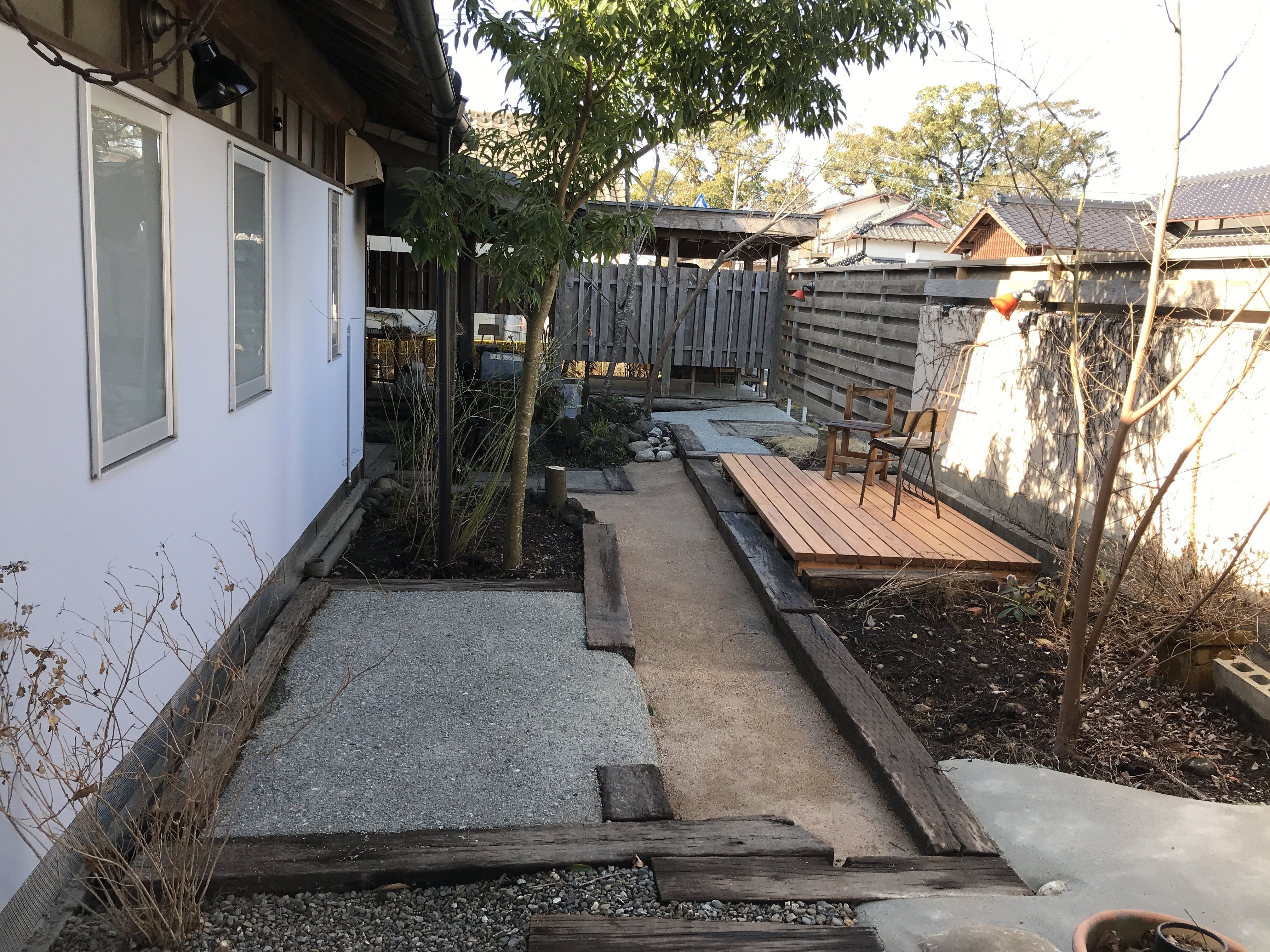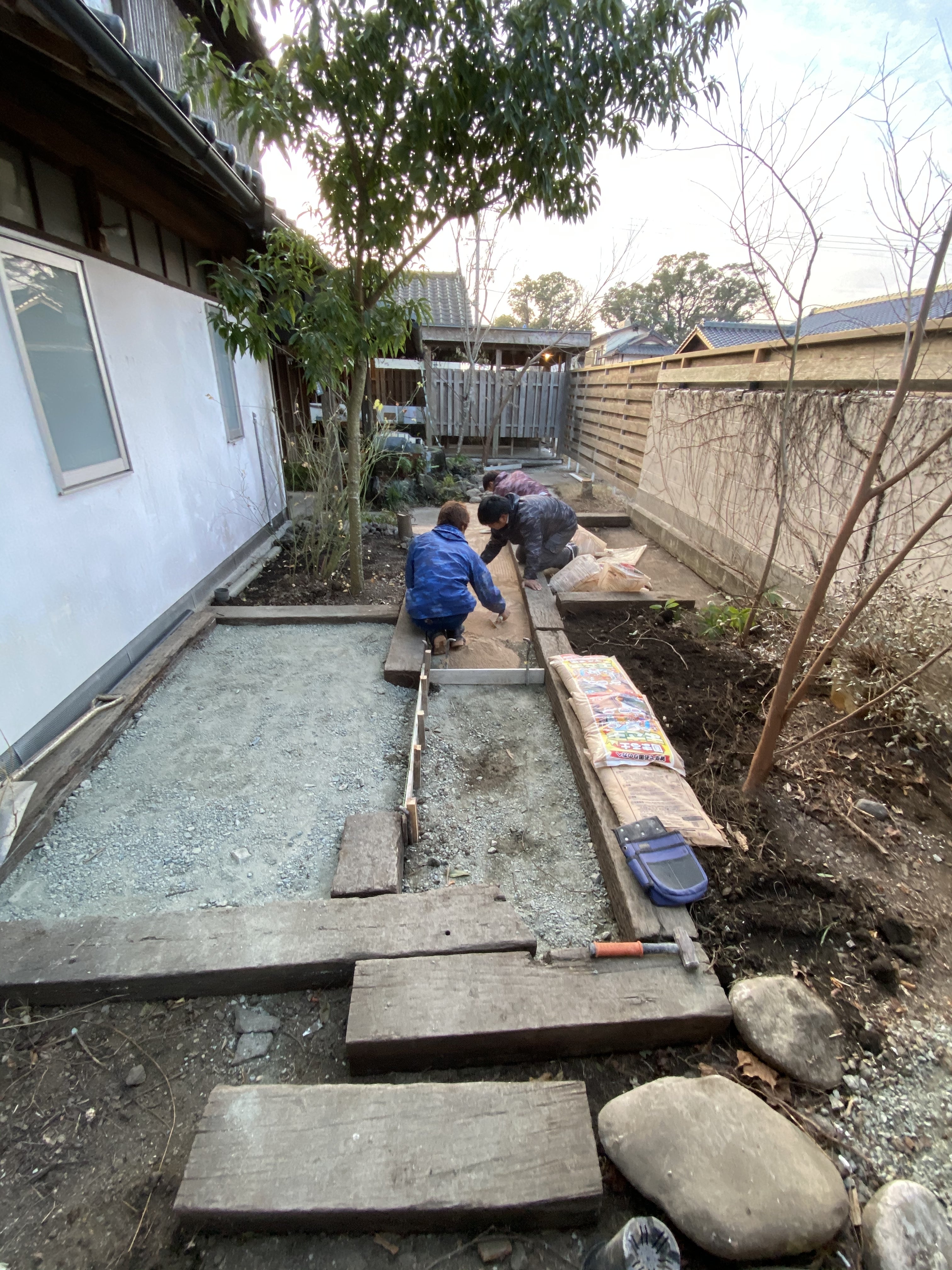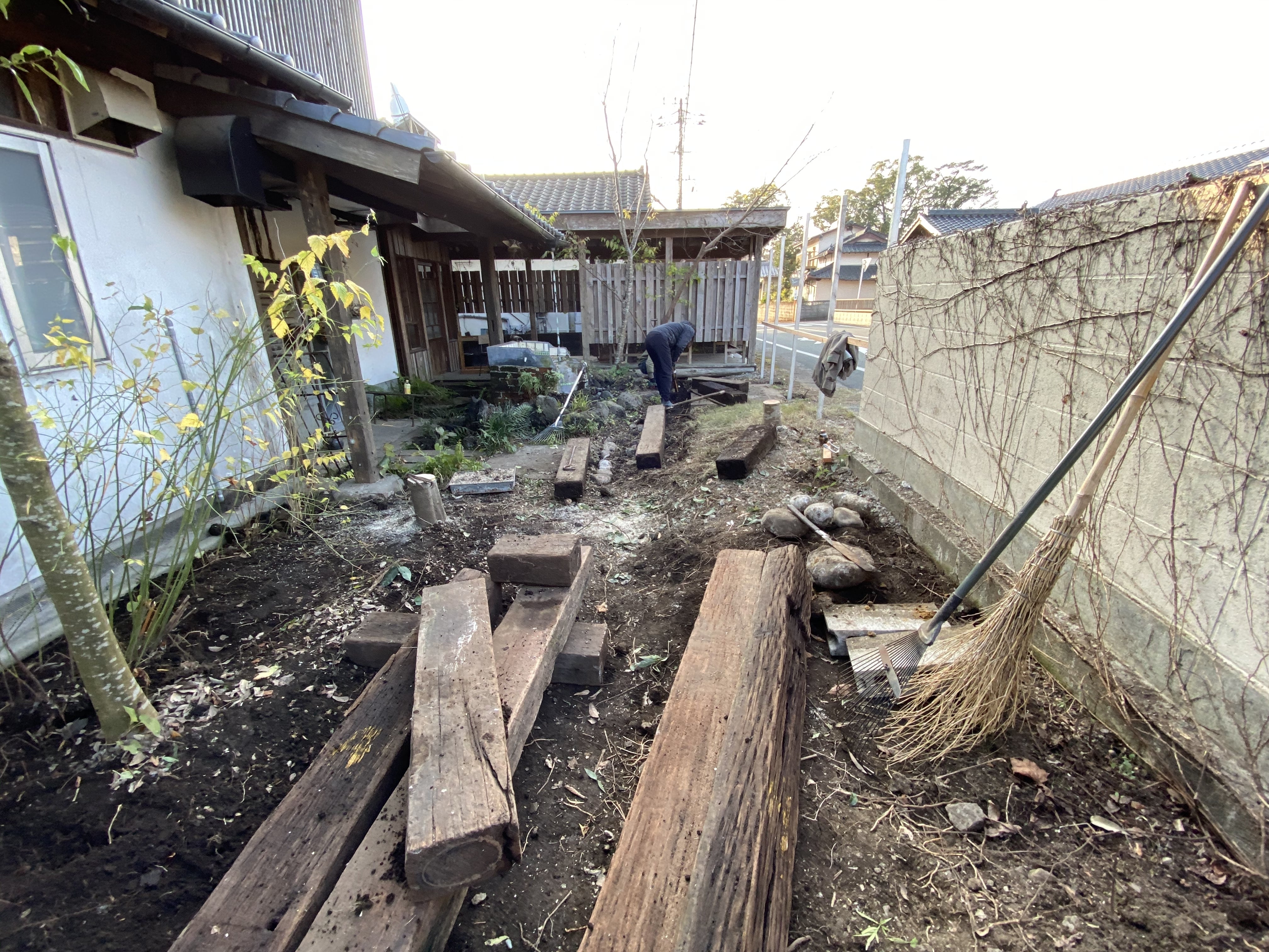 理想は森の中で…だったのですが現実的に引っ越すのは難しい。「カールじいさんの空飛ぶ家」みたいにこのお家にも風船をつけて森の中に飛ばせないかしら…(そんな事を想うほどこの家がお店が好きなんです。お店も自宅兼用です)「それならば」とお金をかき集めて小さなお庭をギリギリまで広げて小さな森を作ろう!さっそく基礎の地盤の工事に取り掛かりました。2020年12月〜