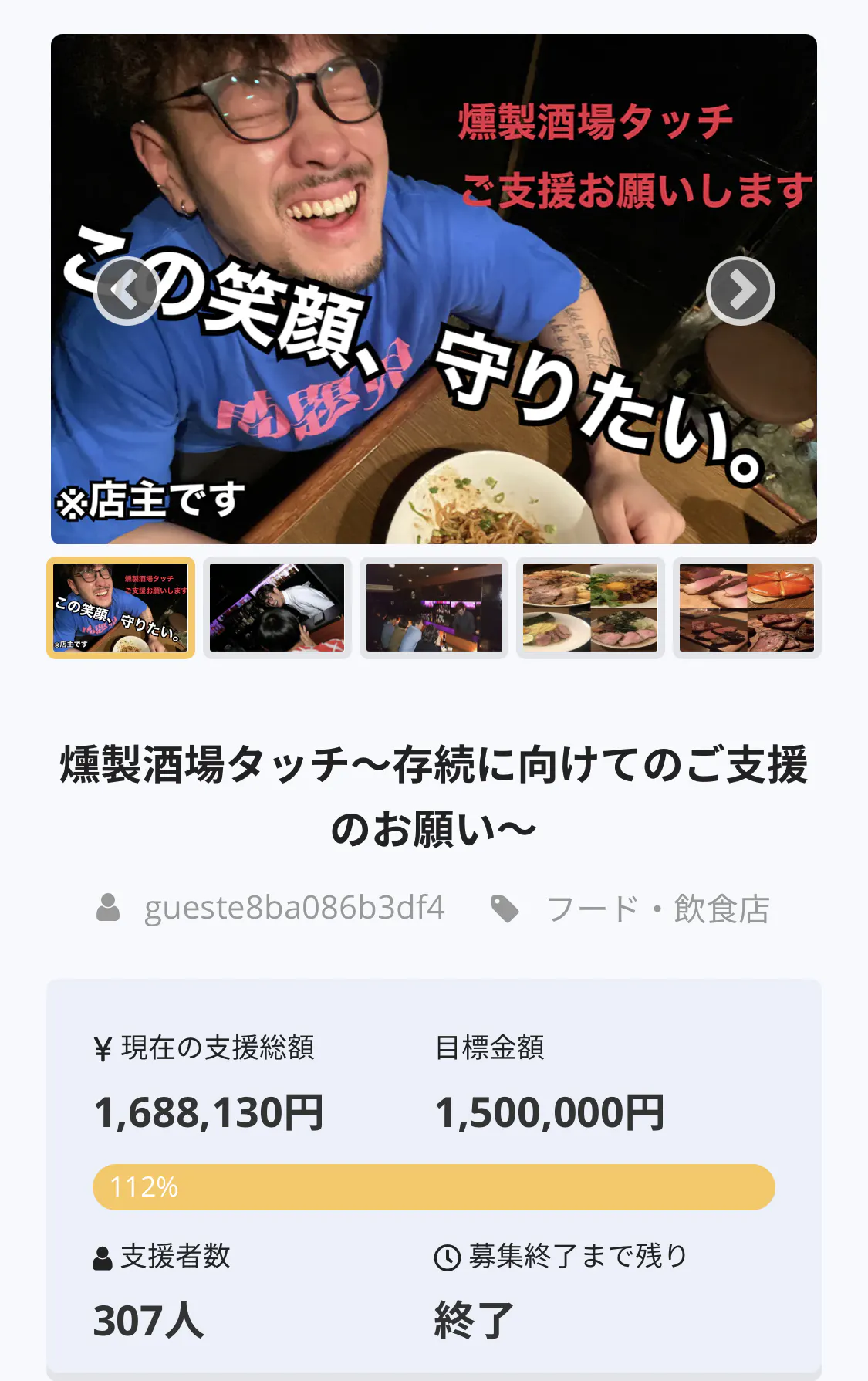 去年から続くコロナ禍に追い討ちをかける様に店舗での火災。原因がわかってないといえ私自身の責任であるのは百も承知です。前回のプロジェクトを無事達成し、沢山の人に支えられ、愛されてる店と実感し昨今の現状を耐え抜いて来ましたが火災保険を使っても全損では無い商品や調理器具、その他雑品などは保険が効きません。