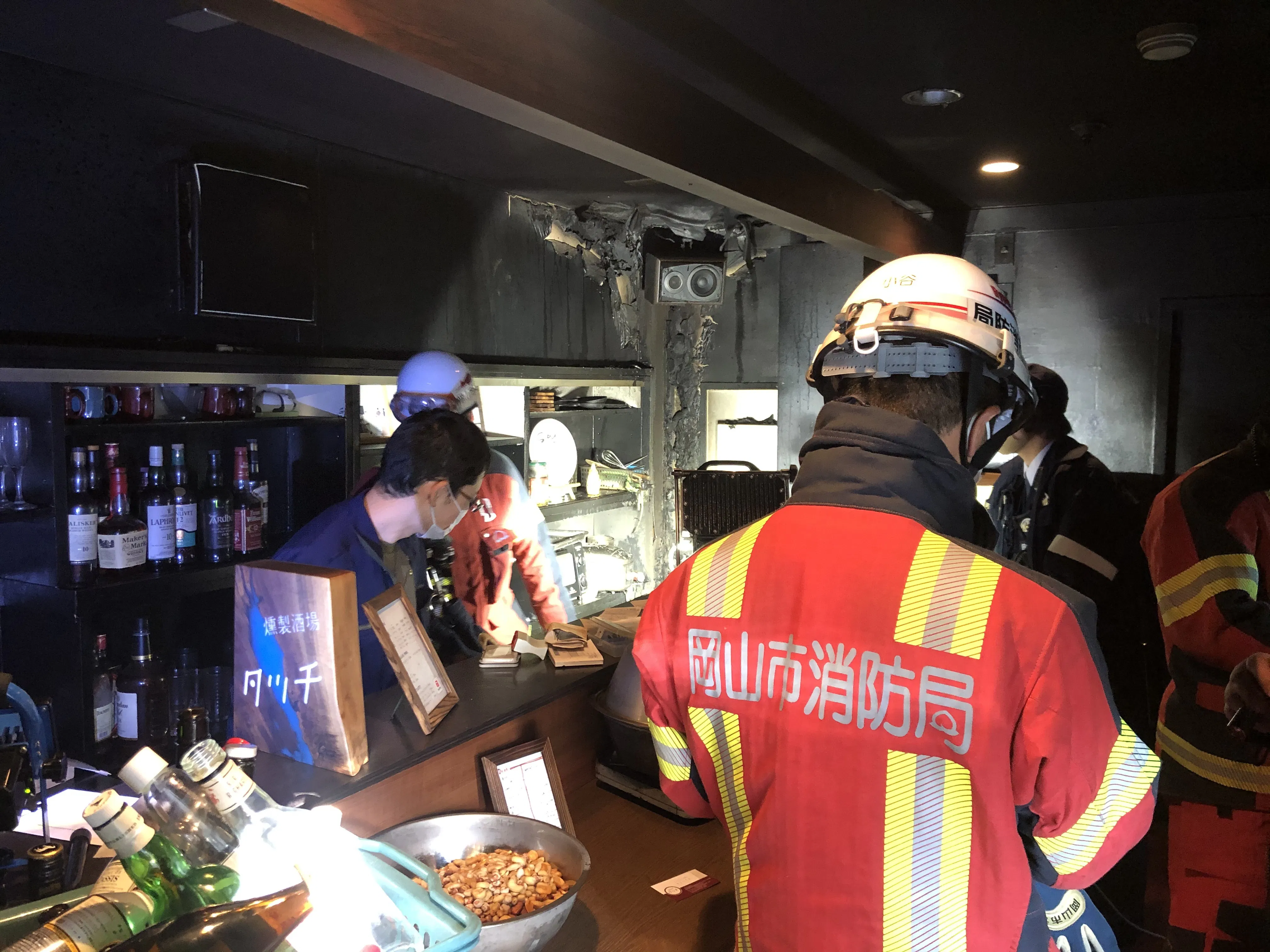 2階の店舗に入ると消防士の方や警察の方