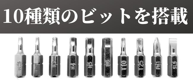 よく使われるビットを厳選したので組み立てから分解をこれひとつで完結!