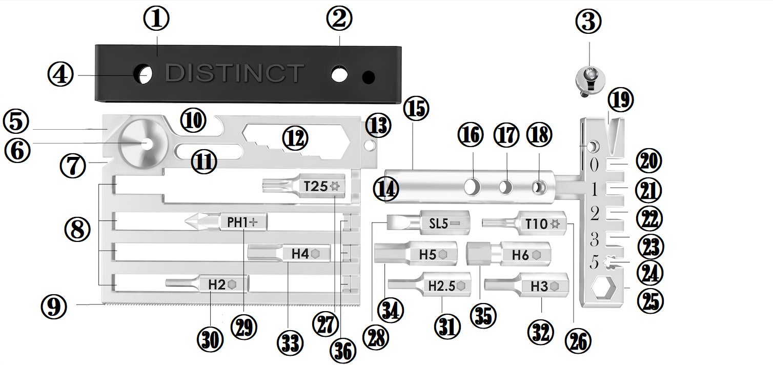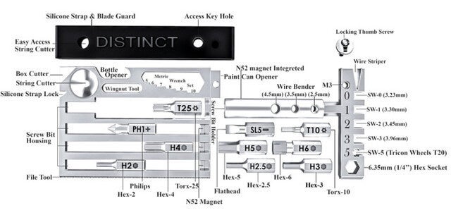 Distinctは使い勝手の良いマルチツールです。標準の1/4 "六角ビットと互換性があります。