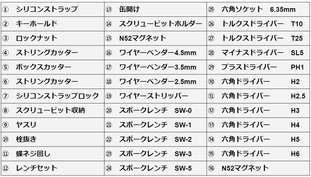 5種類のスポークレンチが使用可能!