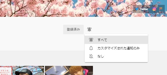 登録した後に [登録済み] の横のベルマークを「すべて」にすると、動画公開や生配信がある時は通知が来るらしいです。もしよかったらその設定もしてみて下さい。