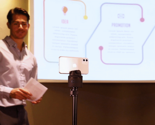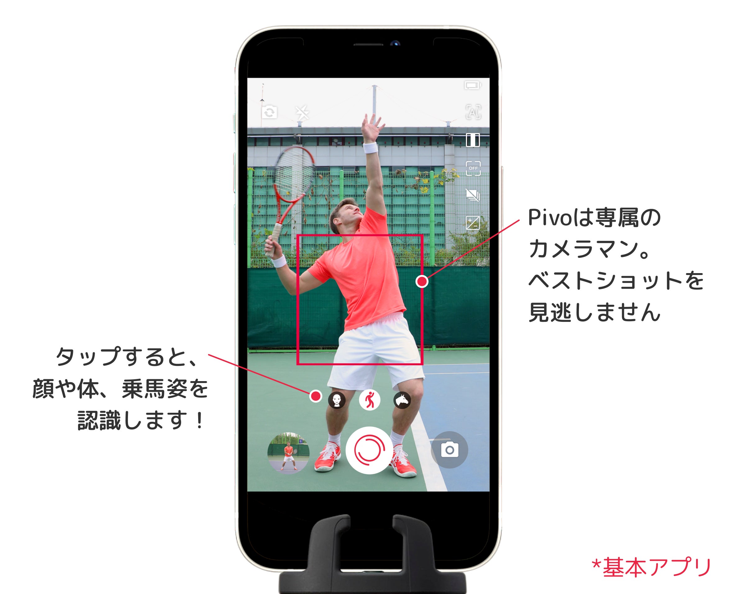 動画や写真の撮影は、Pivoに丸っとお任せ。PivoにiPhoneやAndroid端末を乗せて、準備完了!