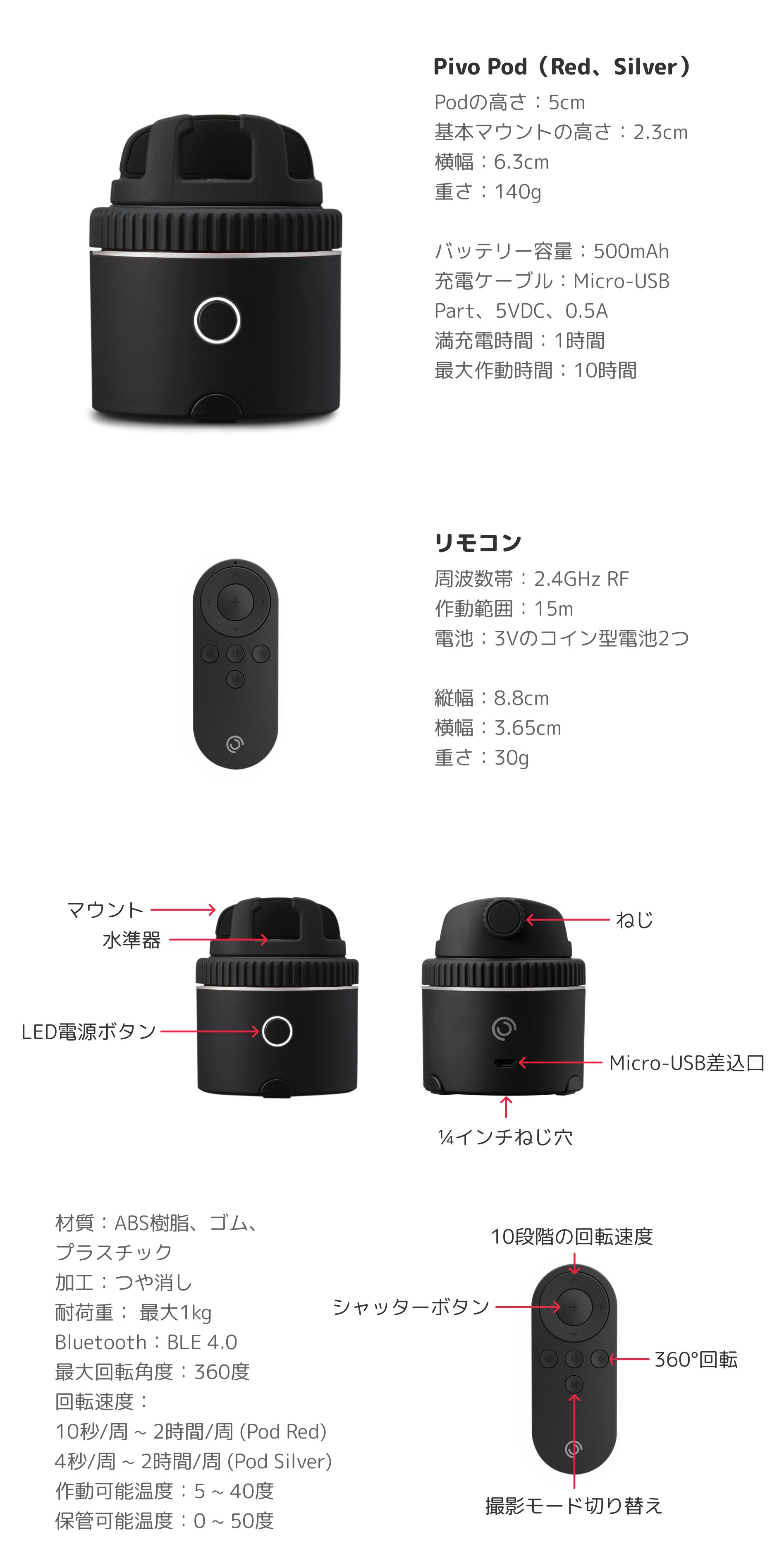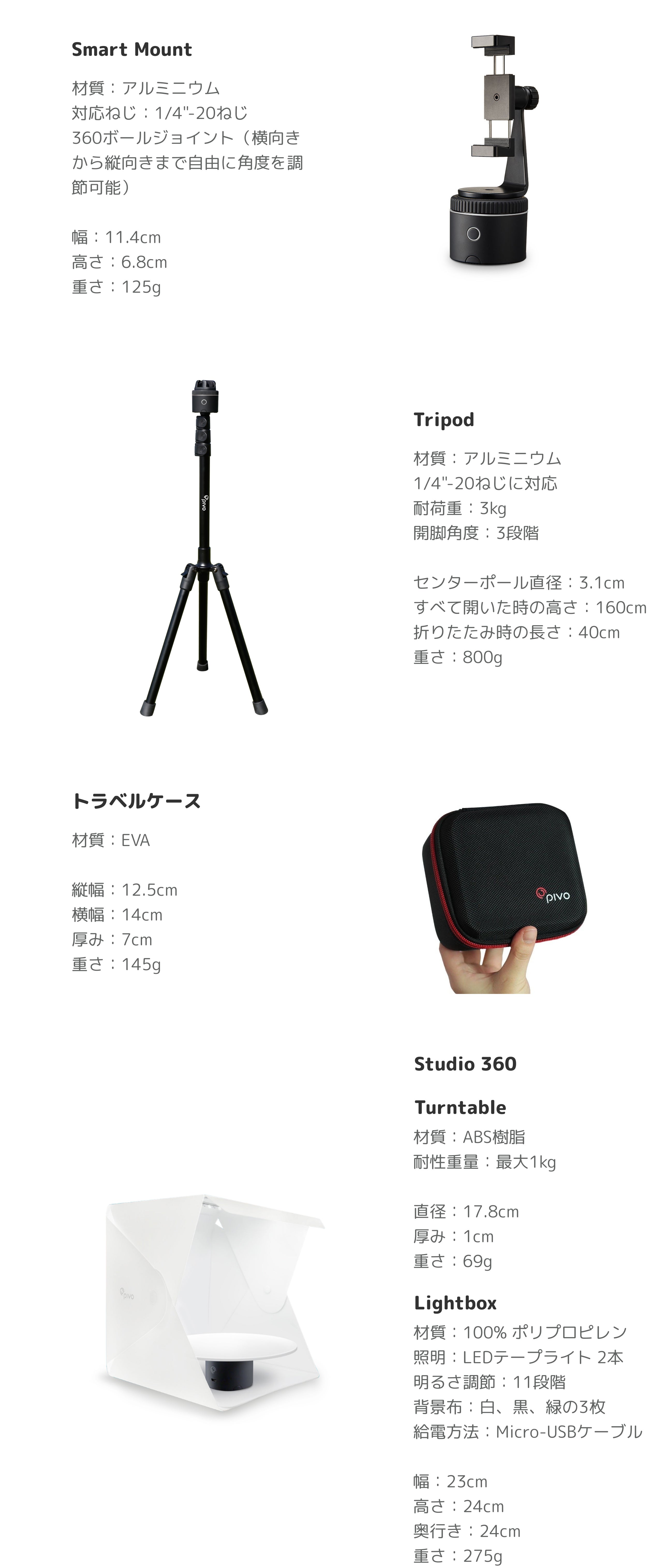 ・Pivo Pod(トラッキング動画や、斬新な動画を手軽に撮影)
