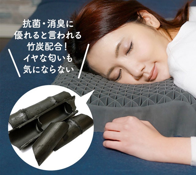 炭は寝汗や雑菌を吸収し、臭いになる前にその⽔分を素早く気化させ消臭の役割を果たします。