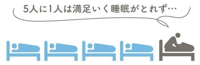 5⼈に1⼈が満⾜いく睡眠がとれず、眠るためにがんばっています。