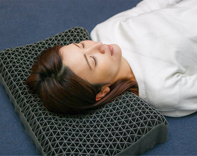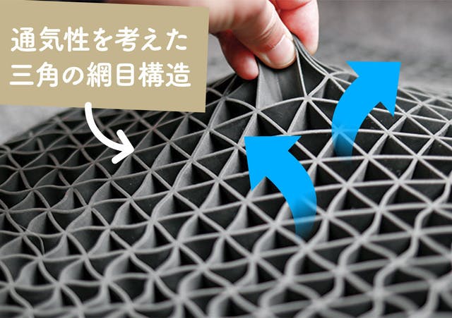 『Demor』は通気性を考えた三⾓の網⽬構造なので、効果的に枕の中の空気を循環。