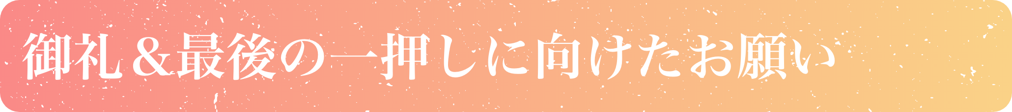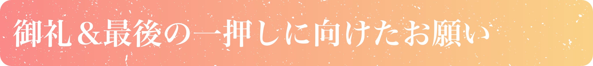 そんな中のご協力のお願いとなります大変恐縮ですが、いただいたご支援を元に、誠意を持ってこの状況の改善に努め、プロジェクト全体を通して人間としても成長し、社会へ還元をしたいと思っています。
