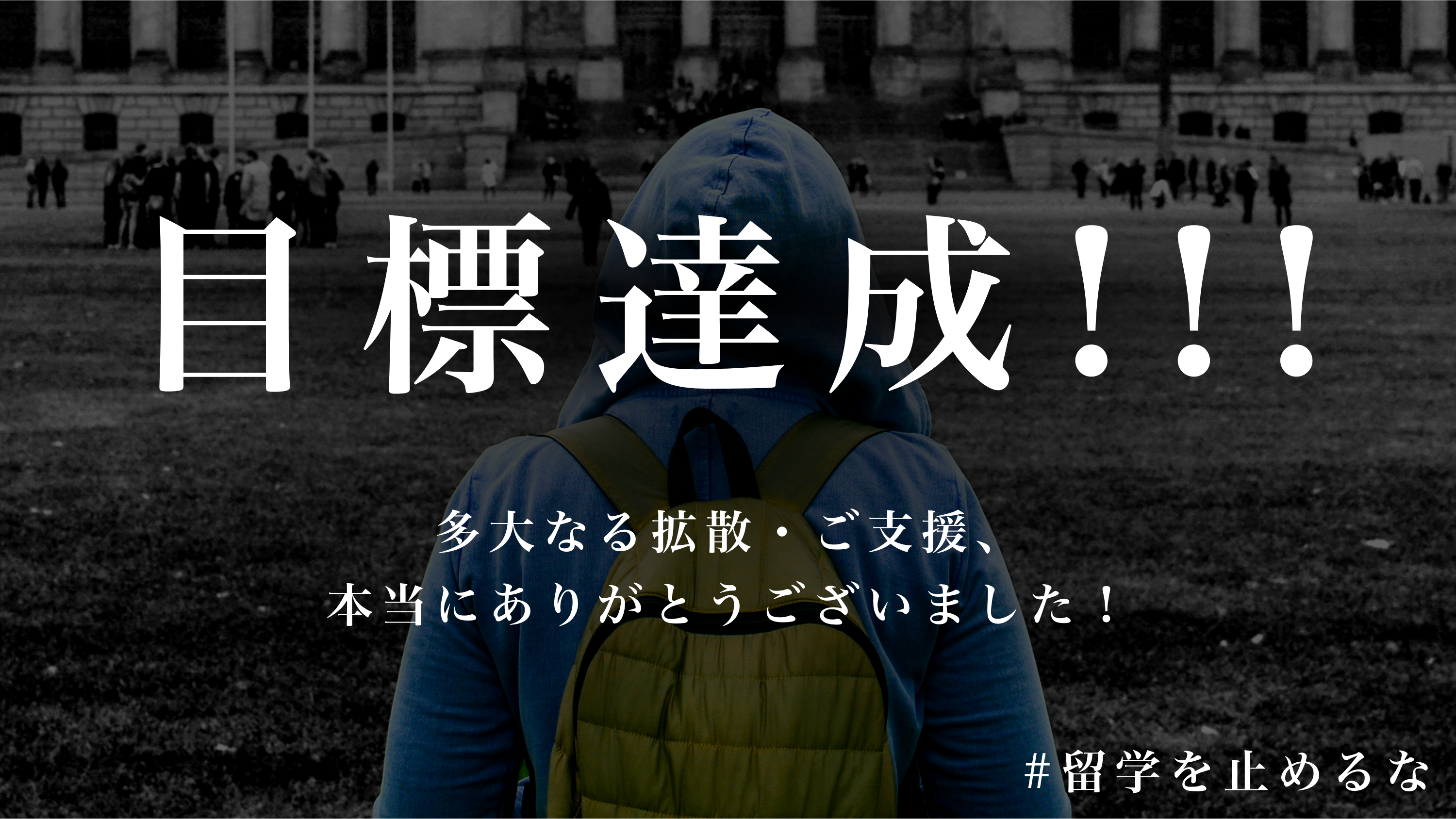 2021/02/27 23:43「#留学を止めるな」クラファン、最終日に目標金額300万円を達成しました!今回のプロジェクトに共感し、拡散・ご支援してくださった皆様のおかげです。本当にありがとうございます。後ほど、改めて支援者の皆様への感謝を投稿させて頂きますが、取り急ぎ、ご共有させて頂きました!本当にありがとうございました! もっと見る