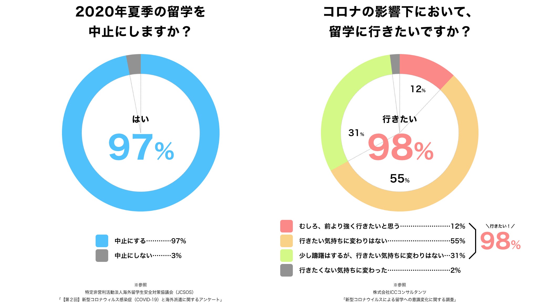 しかし、このような状況にありながら、98%の学生は「留学をしたい」という気持ちに変わりはないと回答しており、コロナ禍における、留学の機会提供は社会的課題となっています。