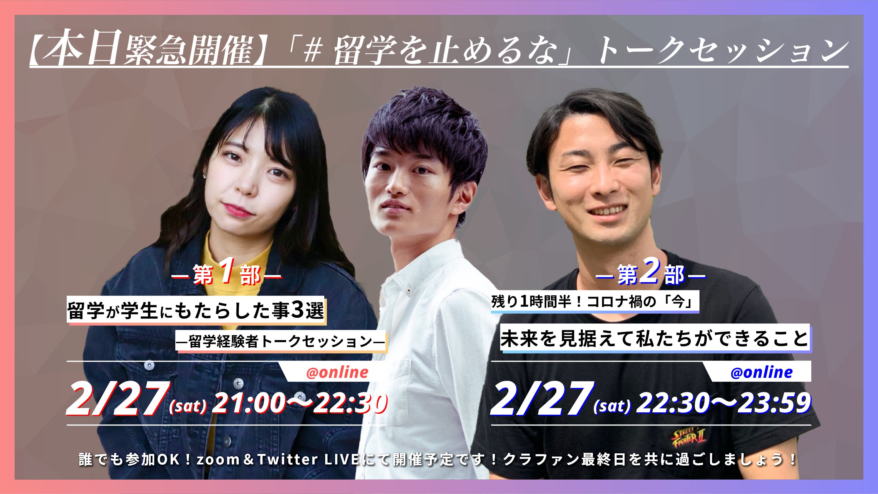 留学経験豊富な学生とクラファン終了の24時までトークする予定です!