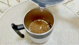 この【mix mug】はコーヒー豆とお湯を入れるだけで簡単に混ざって