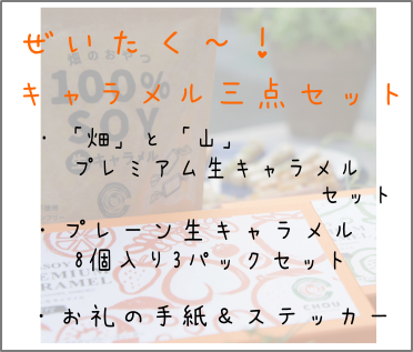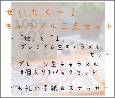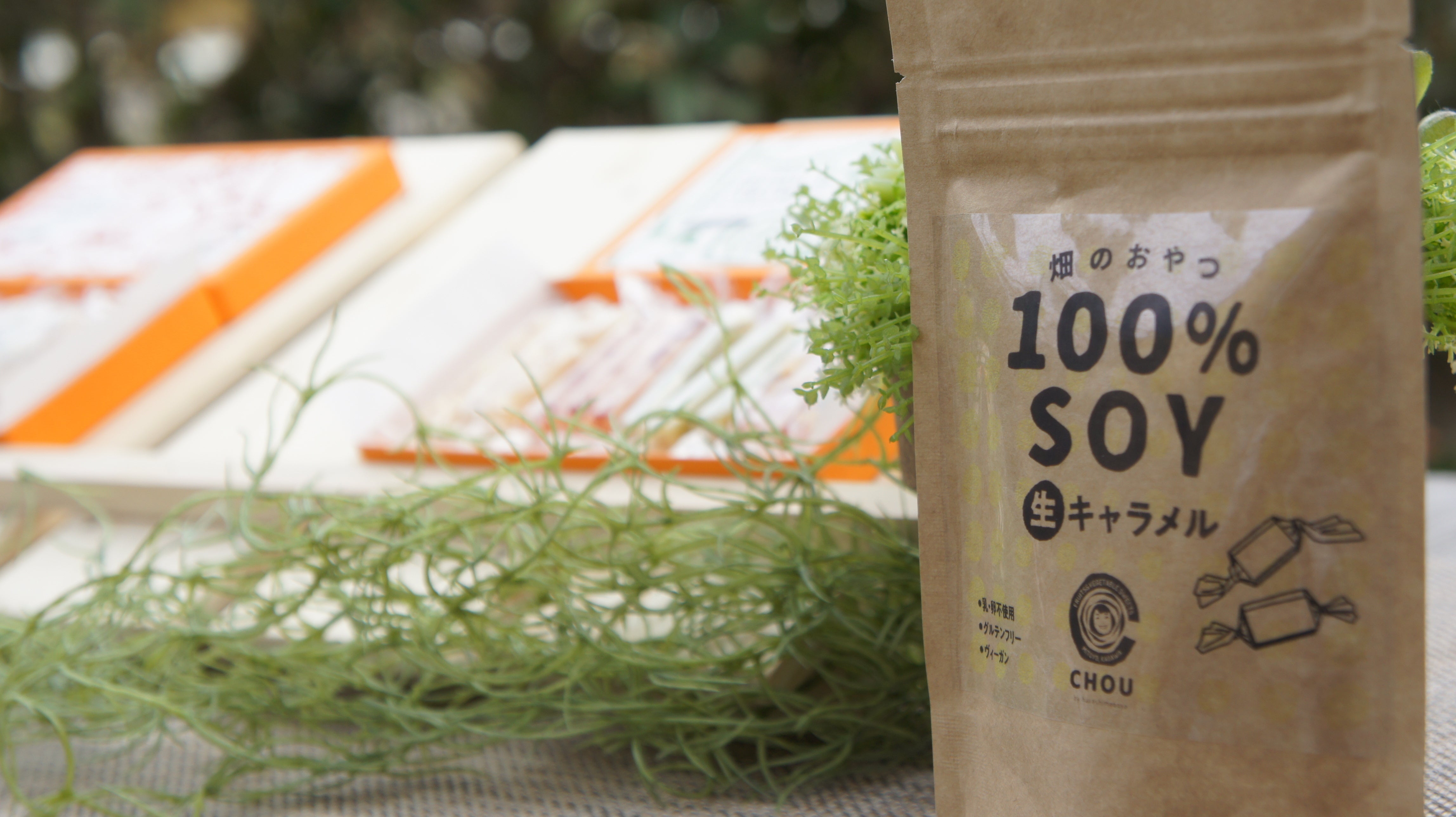 そこで!「CHOU」商品第一弾としては、大豆原料由来の生キャラメルを作ることに決定しました。