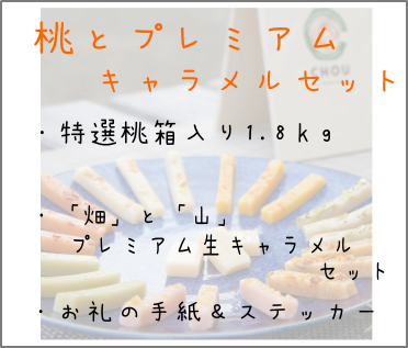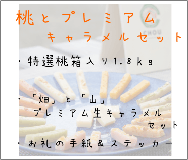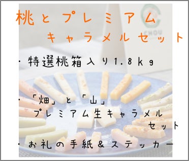 ハラシモベースで生産している桃とプレミアムキャラメル「山」「畑」セット 15,000円