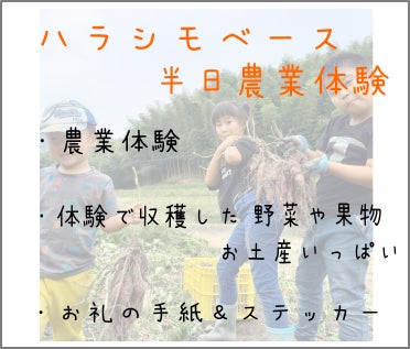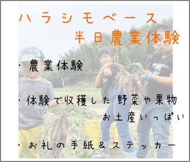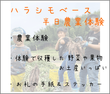 ハラシモベース農業体験お土産たくさん半日コース 30,000円