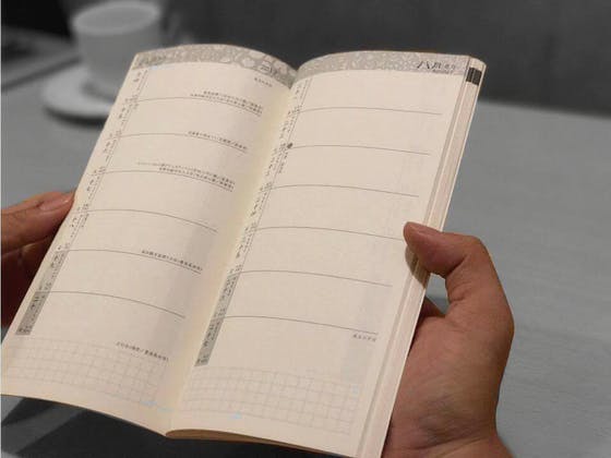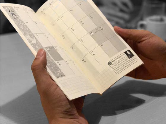 2017/10/26 23:23なんと!国東半島手帖の具体的な仕様を、ここまで全くご紹介していないことに気がつきました! 手帳のサイズは、210mm×105mm。具体的には、A4三つ折りがちょうど差し込める大きさです。(あちこち巡っているとA4の資料が増えてきませんか?三つ折りにして手帳にはさめば、すっきり!) マンスリーページは、予定をたっぷり書き込めるようになるべくシンプルにしました。 日付は、あえて漢数字!(卅=30という漢字をこの度はじめて知りました!)祝日、二十四節気、そして満月と新月を表示しています。 ページ下にはメモ用の余白を確保。(私は日付の確定していない予定を付箋に書いて、このスペースにぺたぺた貼ったりします。) 右下には、毎月ミニコラムを載せました。その季節のお祭りや食べものなど、私たちが季節を感じる風物詩を写真と文章で小さくまとめています。 手帳としての実用性を重視したマンスリーページ。国東半島手帖のいちばんの国東半島手帖らしさは、ウィークリーページにぎゅっと詰め込まれていると思います。次回は、ウィークリーページのご紹介です! (半島会議:荒井) もっと見る