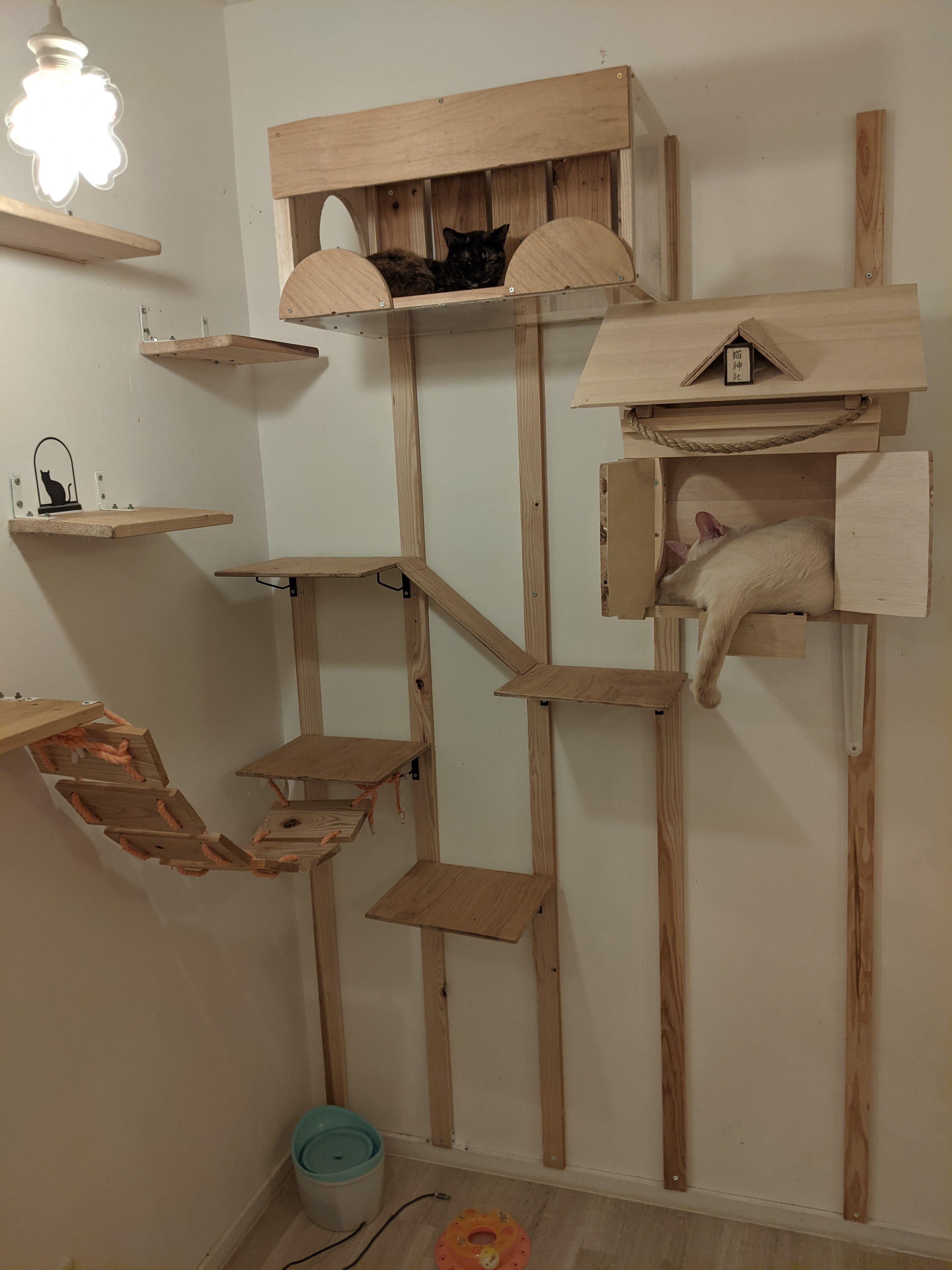 画像キャプションキャットウォーク、キャットタワー、猫ハウスなど、作ってみて猫カフェに取付け子供たちの反応を見てからの値販売です。