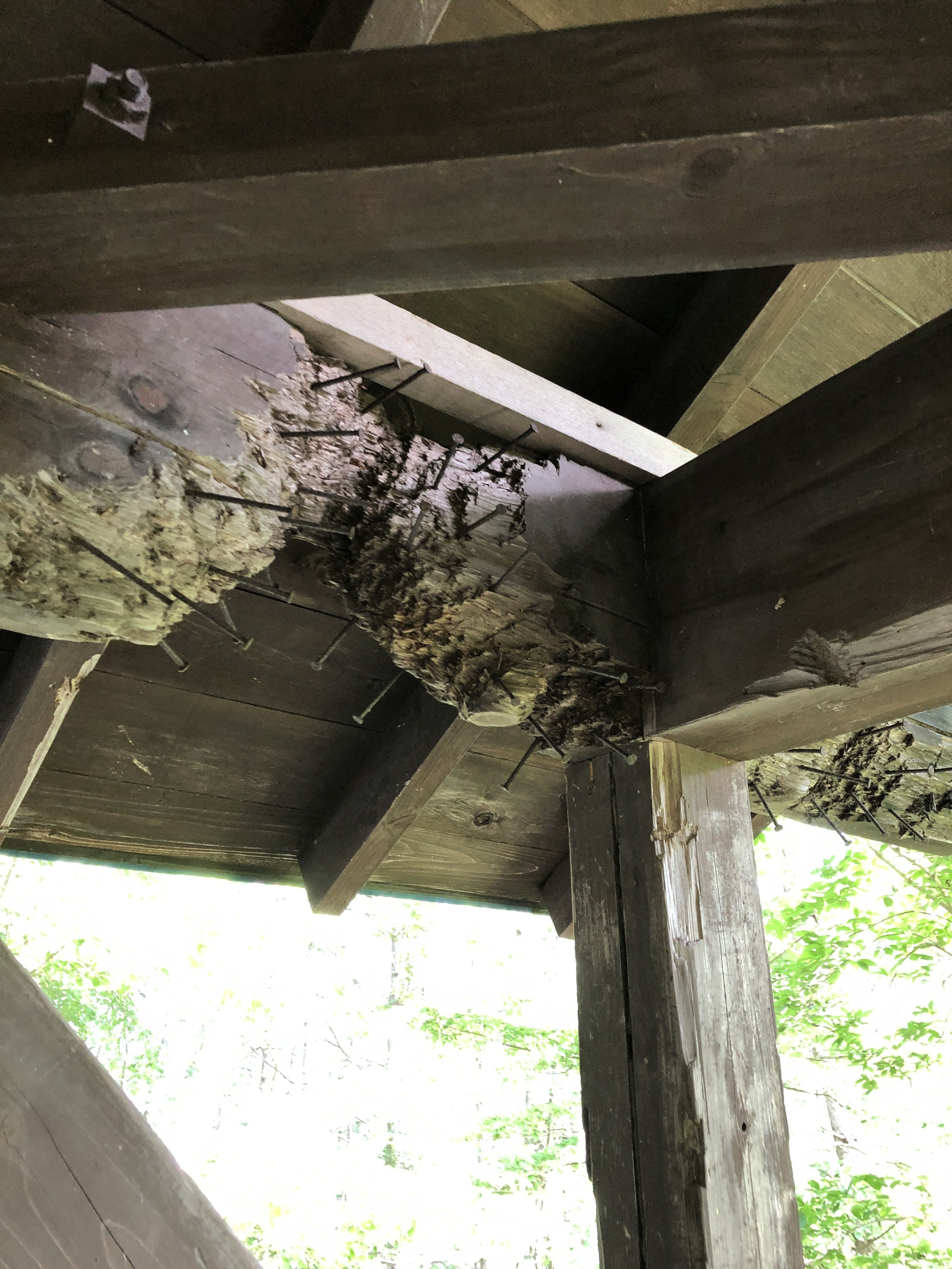 熊はいったい何のためにかじるのだろう?? これ以上かじられないように釘で防御しています。