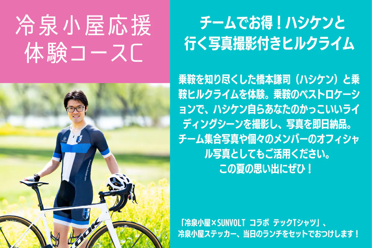 体験型コースC|チームでお得! ハシケンと行く写真撮影付きヒルクライム