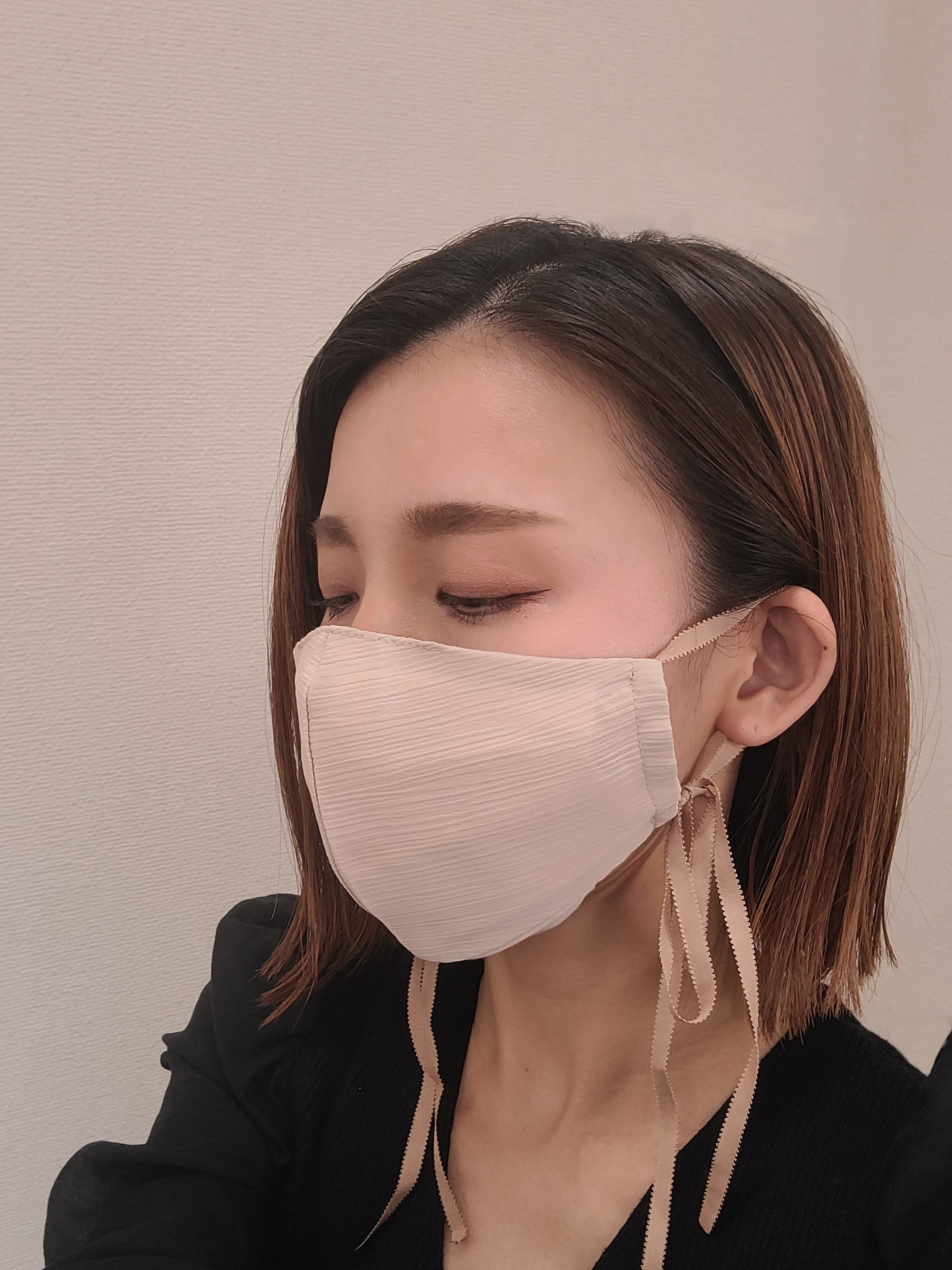 ●頬部分の生地巾を小さくすることで、不織布マスクの大きな印象をすっきりと!