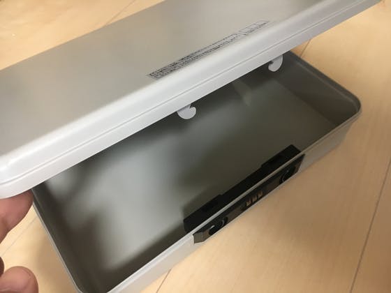 三桁の数字のダイヤル錠で開くようになっており、しかもサイズもA4サイズが使えるので、数段回ある謎解きのうちのひとつに使用したいですね。