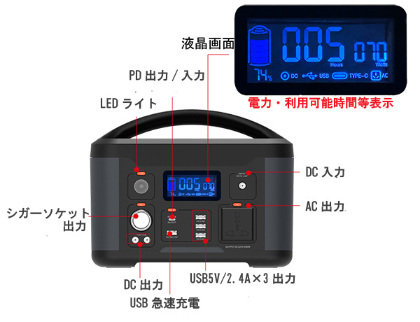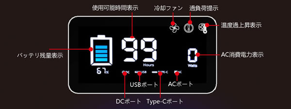 ポータブルバッテリー本体のバッテリー残量をパーセンテージ表示をします。