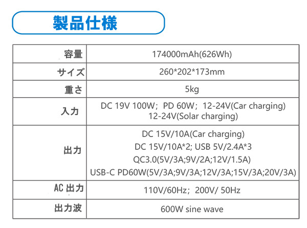ドローンの電池の充電や、工具の充電、屋外での撮影にも