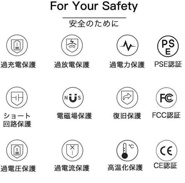 モバイルバッテリーに必須の日本国内の電気用品安全法の技術基準(PSE)も取得予定です。