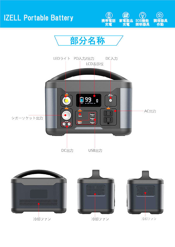 IZELL-IP28 Portable Batteryはキャンプやアウトドアでご利用頂く事はもちろん災害時等のいざという時のに使いやすいポータブルバッテリーです。