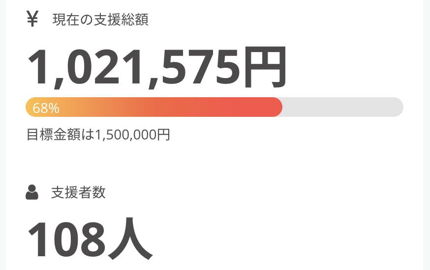 今日の時点で108名の方にご支援いただき支援金の総額が100万円を!超えました!やた〜!!!