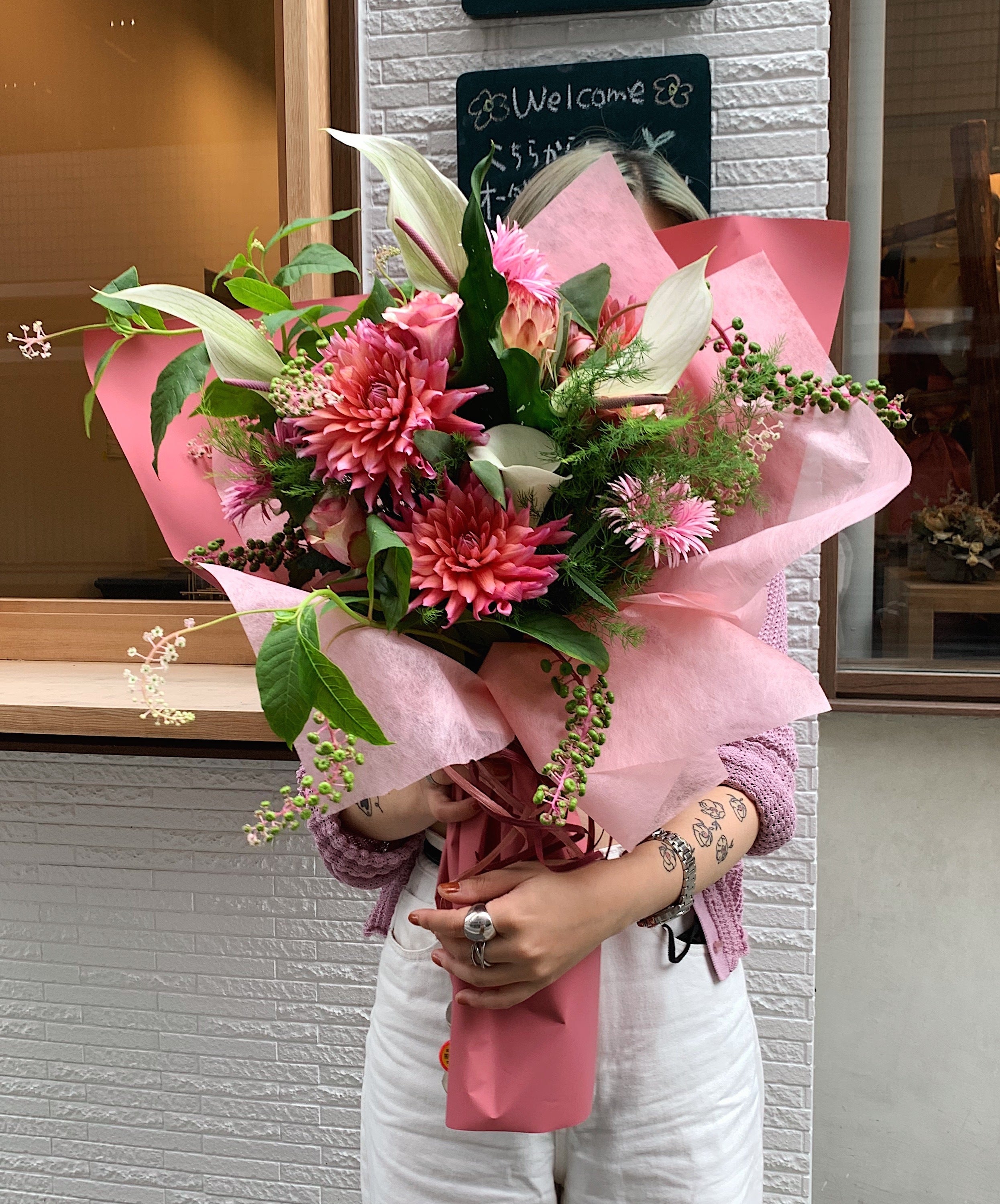 元々6年間アイドルとして活動していました過去があります。メジャーデビューを経験しラジオパーソナリティーなど色々な芸能活動をしていました。その際にお花を頂くことが多くたくさんのアレンジメントに感銘を受けお花の魅力に惹かれました。引退後お花の専門学校に通いながら有名フラワーアーティストのアシスタントと数々の花屋に勤め店長職などの経験を積んできました。