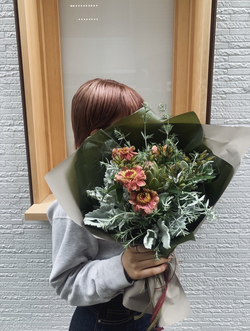 お祝い花などの花を届けられる機会が少なくなってしまい、お客様と直接触れる機会が少なくなっています。そんな世の中だからこそただ花を販売するだけではなく、お客様のご相談など親身に聞ける環境を作り、一つ一つの作品を作りたいと思っています。