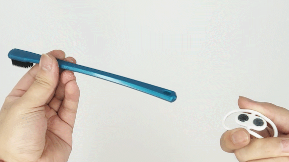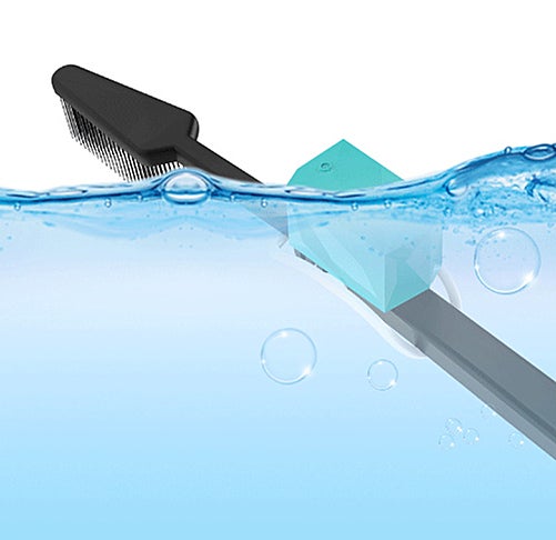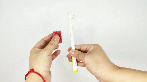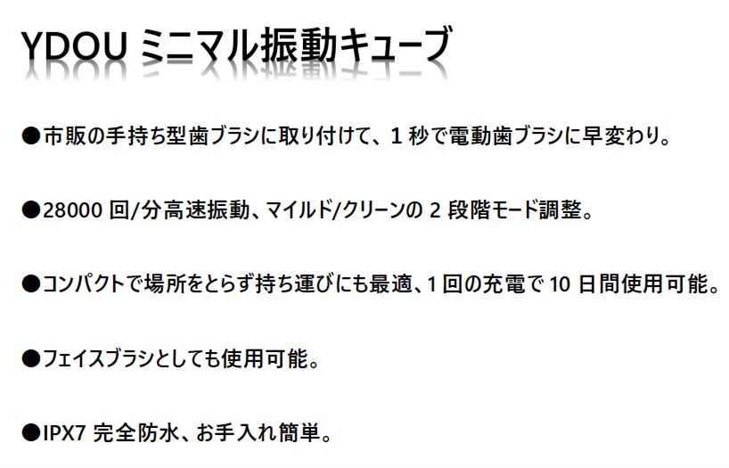 実は、このように市販の手持ちタイプの歯ブラシに取り付けるミニマル振動キューブ「YDou(ユンドゥ)」なのです!