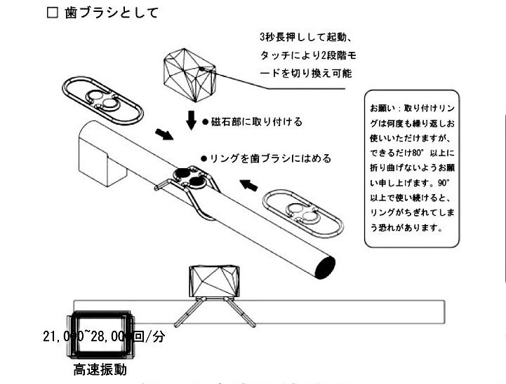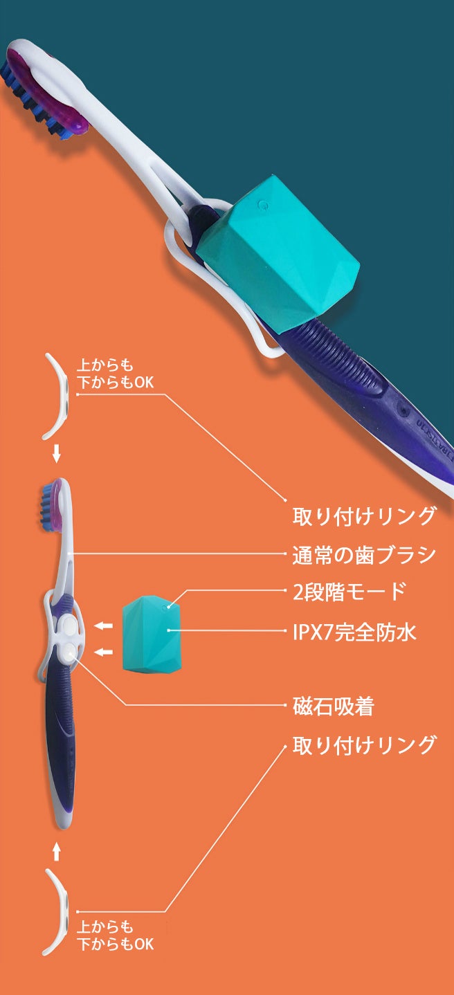 交換ブラシを振動本体に取り付けるという従来の電動歯ブラシの発想とは全く異なり、振動キューブを手持ちタイプの歯ブラシに装着して電動歯ブラシに早変わりさせてしまうのです!