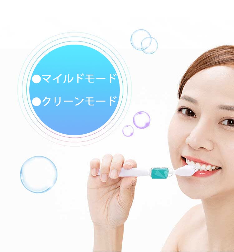 キューブ上のスイッチを一回押しでモードが切り換えられます。しっかり汚れを取りたい時はクリーンモード、歯や歯ぐきが敏感な方はマイルドモード、お好みに合わせてご使用いただけます。